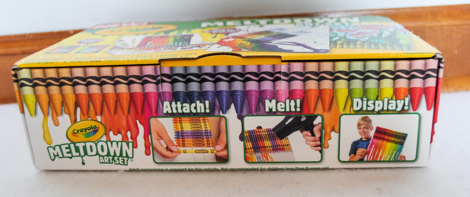 In 2012 Crayola produced the Meltdown crayon series and released the crayons at Walmart. I heard about them, but never found them in stores. I later found them online, but did not want to pay 5-6 dollars a box plus shipping. I was ecstatic to find that JoAnn Fabrics was selling them this year online and on sale. Double bonus. I ordered them all. I also found this Meltdown Art Set box at Michaels. It only includes 2 unique boxes even though it says 24 crayons. The art set box is the same as a 120 crayon box. I took the paint out and put all 12 Meltdown boxes inside. I love that they can all be together in this very unique looking box. I put pictures of all the sides just because I was so impressed with the box design. I can not wait to do some meltdown art with the canvases. I will not be using the crayons that came with it, but will probably pick up a 96 count box, find the colors from the boxes and do some art that way. Look for this art project later this year after I get all my collection put up on here :)