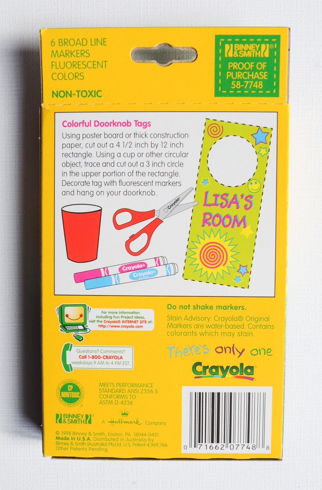 The code number is not on the back of these boxes, but on the inside flap on top. I forgot about it when I was taking the picture and will get a picture soon. This is one my oldest box of markers, even though I bought it only this year. I am sad there is not a good website to find information on Crayola marker history. Hopefully with time and with people sharing their photos, the story of the Crayola marker can come together more.