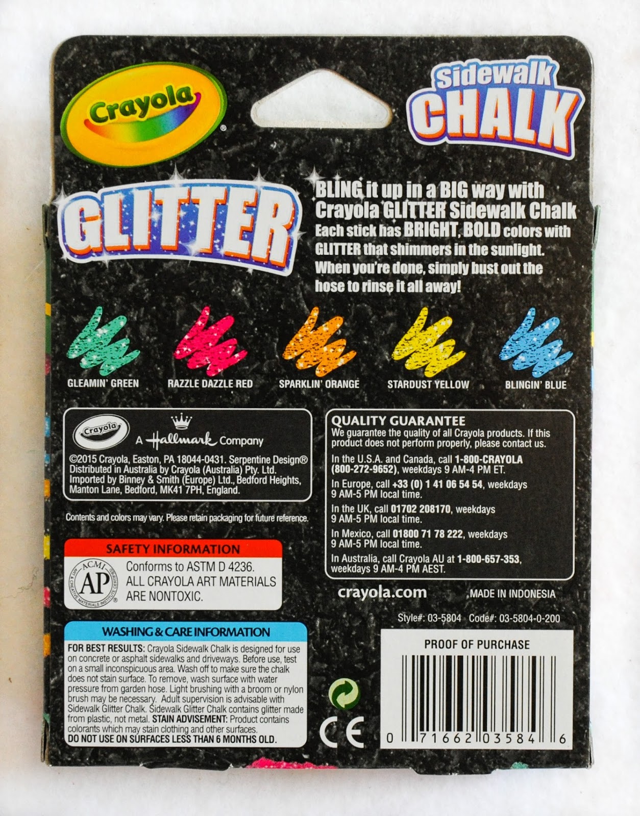 Other Boxes: I think Crayola introduced this line in 2015 for the first time because of the -200 code numbers. There are larger boxes of glitter chalk