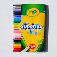 Click here to find all the current colors in the Crayola broad line marker set, 64 Pip-Squeak marker box and 50 SuperTips.